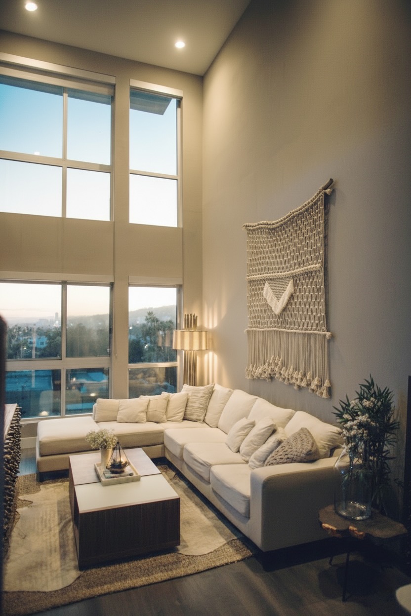 Materials: nautical rope and 100% cotton rope fringes. Natural wood branch.
